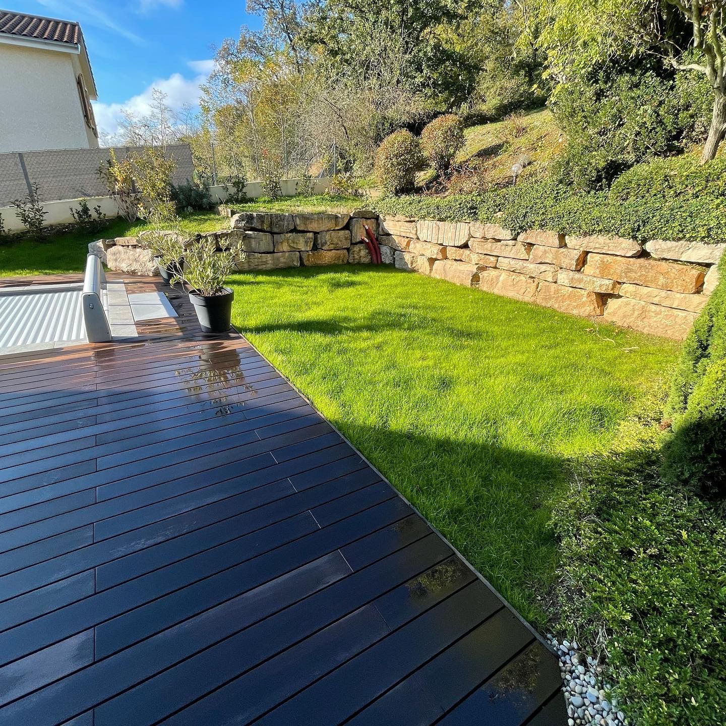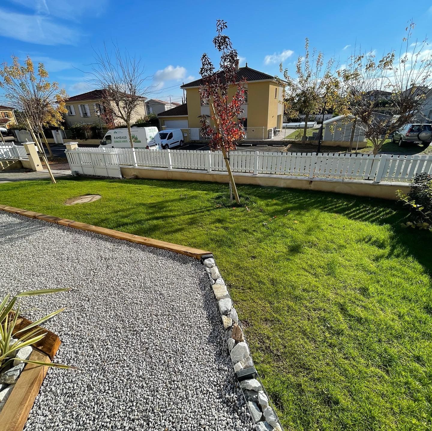 En plus d’effectuer l’engazonnement de votre jardin, notre entreprise, Rambaud Espaces Verts, vous propose également des prestations pour son entretien telles que l’installation de systèmes d’arrosage automatique, la tonte de votre pelouse, le soin de votre gazon… Faites-nous part de votre demande : nous intervenons dans l’ensemble de la région lyonnaise.